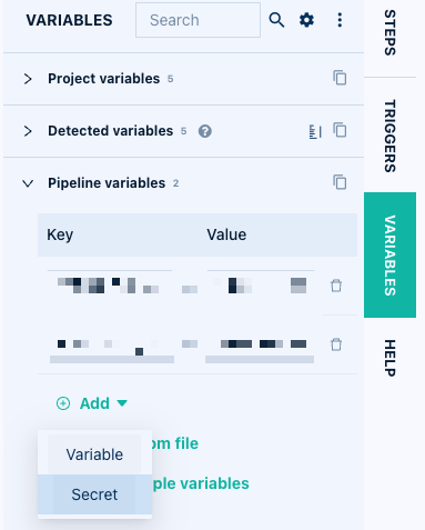 Pipelines: Easily add secret variables